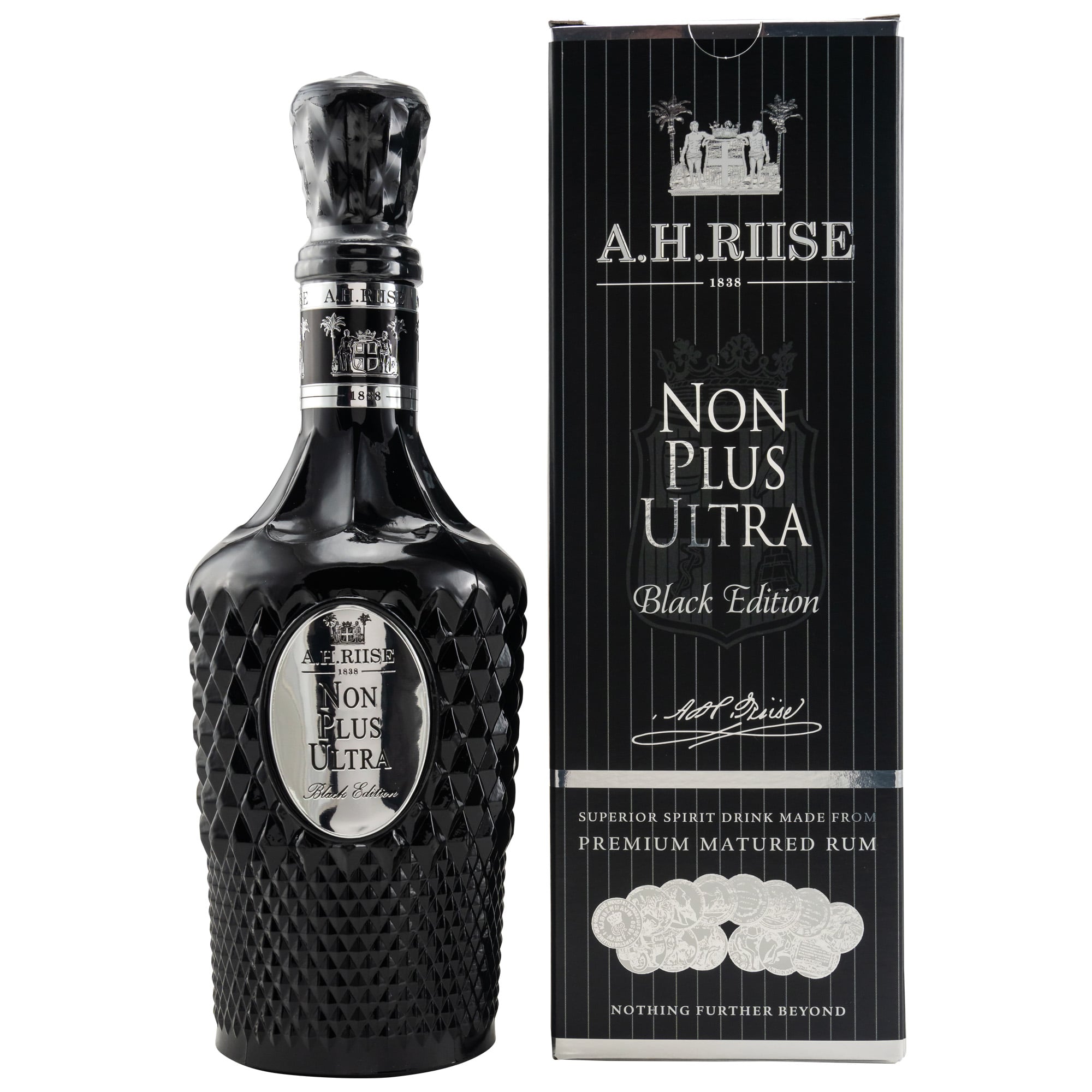 Der exklusive A.H. Riise Non Plus Ultra Black Edition in limitierter Auflage hinterlässt optisch sowie geschmacklich einen bleibenden Eindruck. Es handelt sich um einen hochwertigen Blend aus einigen der ältesten und zum Teil stark ausgebrannten Fässern der Destillerie. Der A.H. Riise Non Plus Ultra Black Edition (Rum-Basis) wird auf der Insel Saint Thomas hergestellt und von A.H. Riise nach Europa und in die USA importiert. Der Super Premium Rum richtet sich vor allem an Kenner und Fans. Die besondere Black Edition des Non Plus Ultra Rums besitzt Sammelwert.